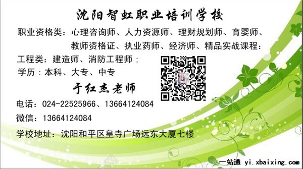 沈阳智虹培训学校是经辽宁省劳动和社会保障厅,沈阳市劳动和社会保障局批准授权开展国家心理咨询师职业资格培训的正规办学机构。